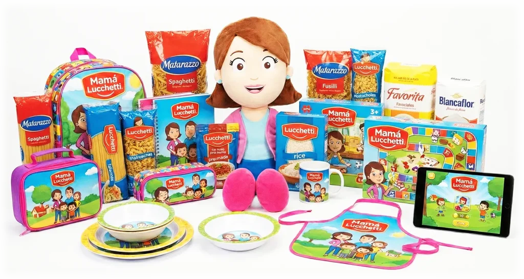 Esta conexión fue tan potente que MAMÁ LUCCHETTI dejó de ser solo una marca de pasta para convertirse en una Propiedad Intelectual licenciable, compitiendo en las estanterías de juguetes de Argentina con personajes de Disney o Pixar.